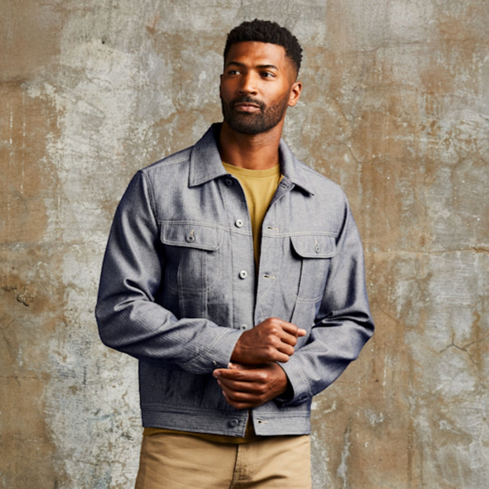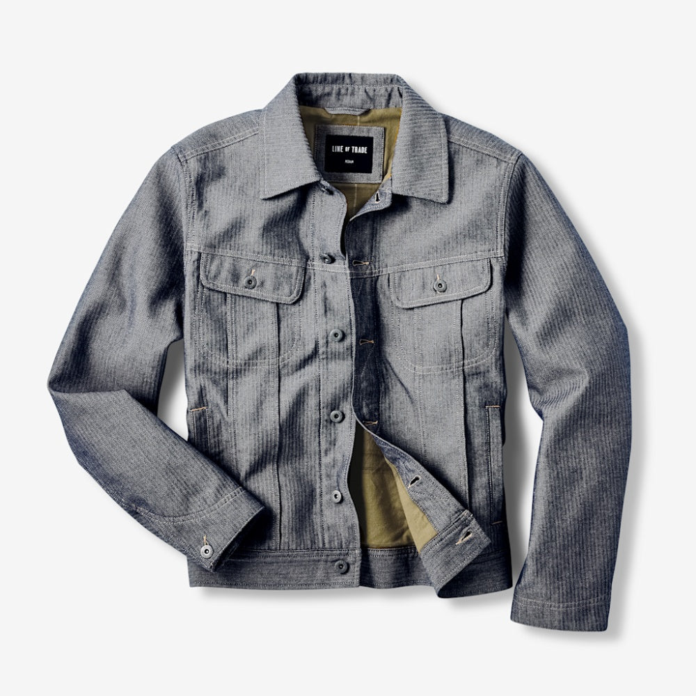 Dakota Herringbone Trucker Jacket - Indigo Herringbone